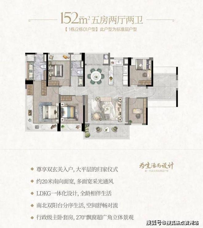 且配备双玄关入户、双阳台、 270°观景飘窗等配置。