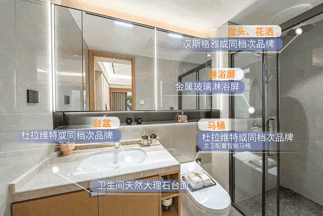 再看装修标准,展开项目交标册子,入目便是汉斯格雅、杜拉维特、普乐美、老板等国内外一线高奢品牌,或以上同档次品牌,说是装修界的楷模一点都不为过。
