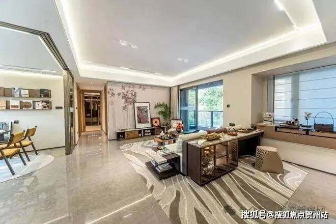 客餐厅&书房一体化布局,国风画幕墙与轻奢几何纹路地毯遥相呼应,于细微之处晕染出东方意境的雅致之美。