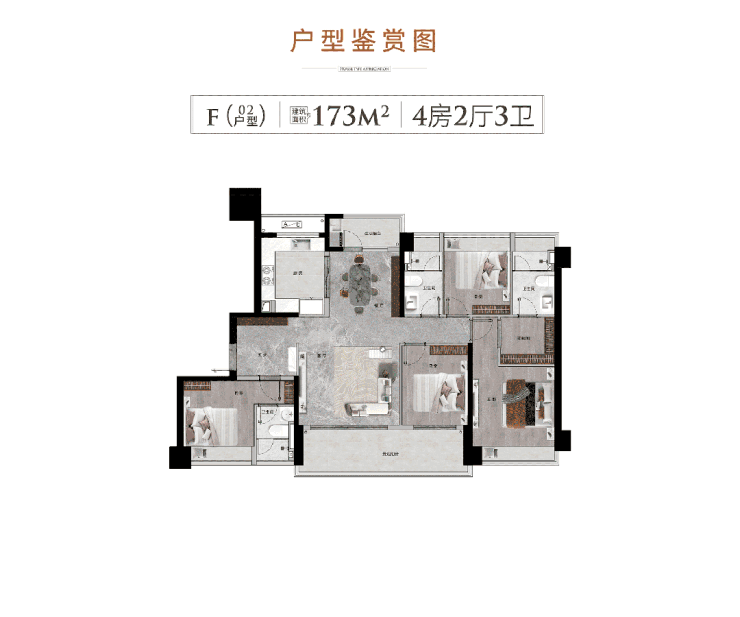 如果想要更奢阔的生活,还有建面约173㎡双套房可选,作为最大户型,它享受全盘最奢资源和最高配置。