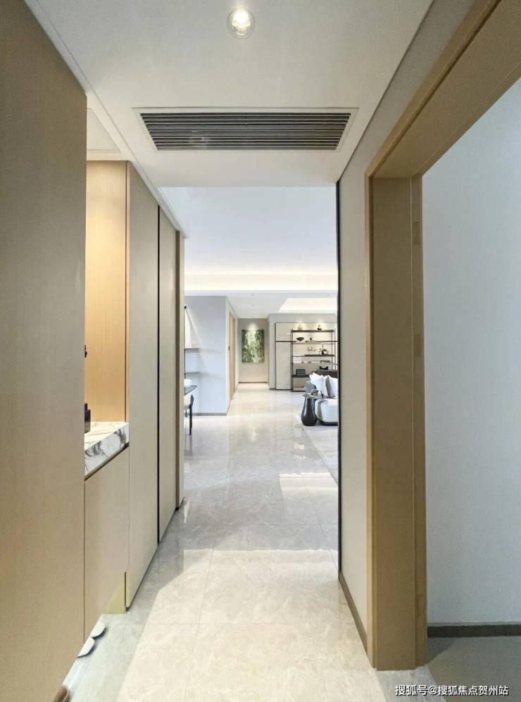 一进门,玄关左侧便是通顶的嵌入式玄关柜,家里的鞋子、杂物再多,都有足够的空间收纳;