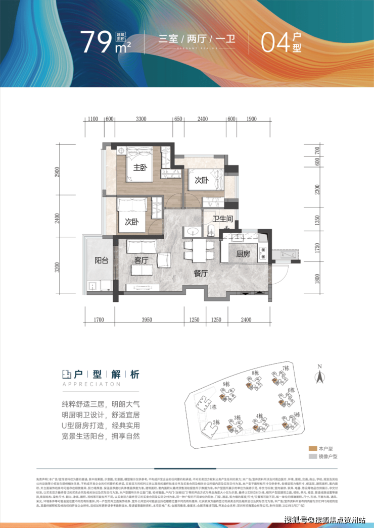 建面约79㎡ 3房2厅1卫:南北通透3房,功能分区合理,全凸窗设计,三分离卫生间