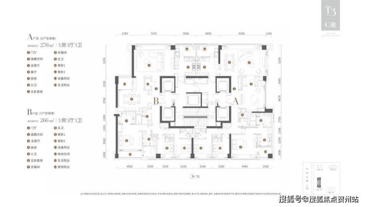 A/D户型:313m²三房三厅三卫,南北通透(卧室全南向)