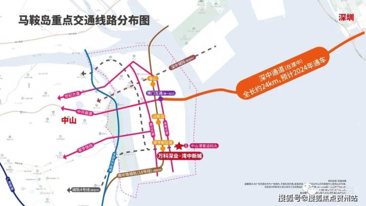 广中深珠互联互通,距离深中通道口约3公里,直接接驳广州地铁18号线,约30分钟可达珠江新城,10分钟南沙自贸区,项目旁即是中山新客运码头,为国家以及口岸码头,多航线直达香港、澳门、深圳等地,是中山唯一的水上枢纽。超级工程深中通道,从马鞍岛出发,全程约24km无红灯,仅需30分钟车程,即可抵达前海,深中通道直达深圳宝安国际机场,畅享国内国际多航班机场。
