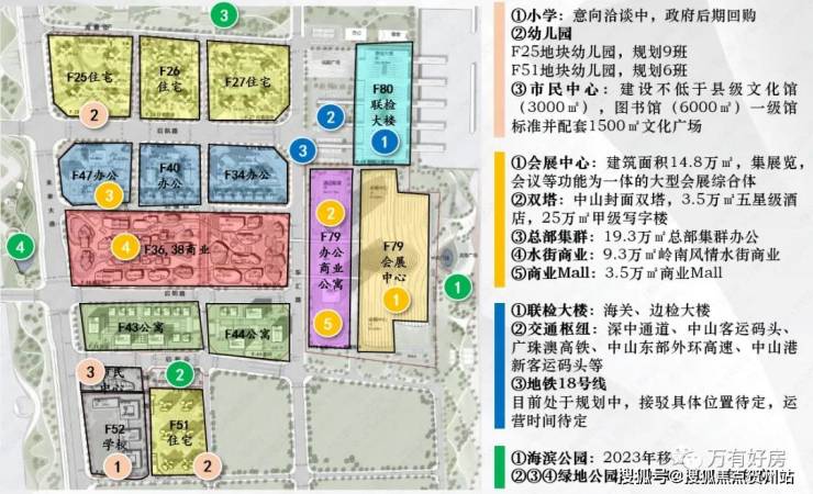项目所处在的“翠亨科学城”片区,规划范围18.27平方公里,将兴建280米高未来之门、400米高摩天大厦,处于南部品质生活区,规划湾区国际医疗城、广州地铁18号线站点、大型文旅项目等,规划马鞍岛最密集的商业用地。