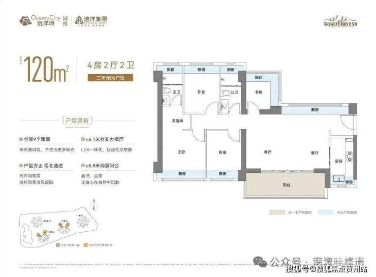 120㎡的4房2厅2卫,折后总价380-410万/套,单价3.16-3.41万/㎡。