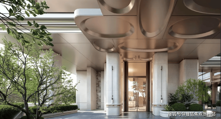 「后海招商玺」车行大门做了殿堂级落客区,设有天幕和水景,非常具备归家仪式感。