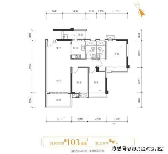103㎡三房:92.59%实用率,总价135万起(区域最低门槛四房)