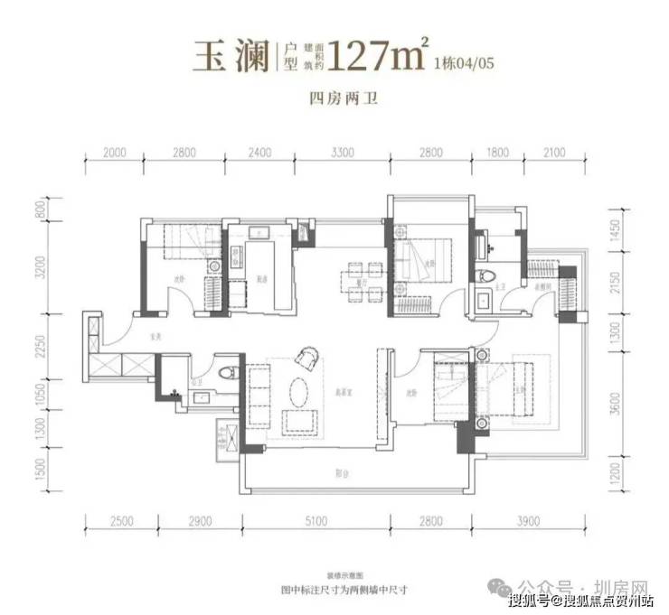 127-130㎡的4房2厅2卫,折后总价590-644万/套,单价4.56-5.06万。