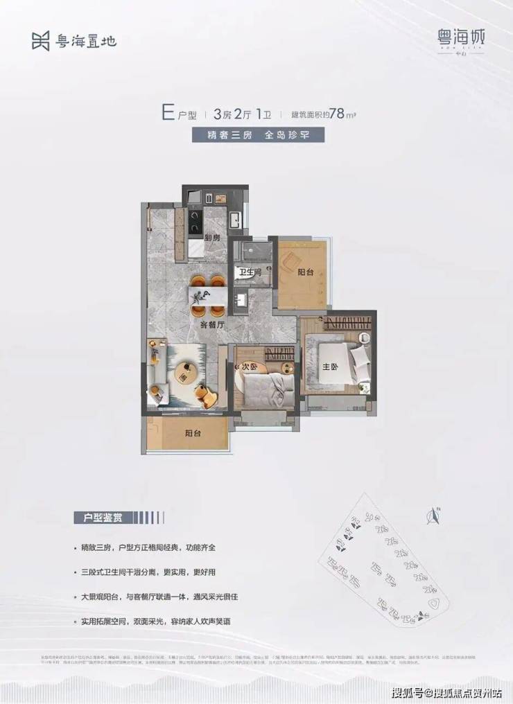 中山粤海城,目前在售户型主要为三至四房,面积覆盖79-123㎡,价格约20000元/㎡,总价约166-258万元/套。户型选择: