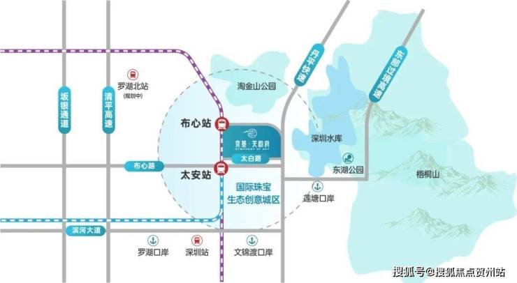 项目距离地铁5号线布心站约250m、距离地铁5、7号线太安站约500米。周边近享2高铁、3口岸、4快速,通达全城,三大口岸年通关量5876万人次,地铁旁物业坐享深港两地海量商机人流。