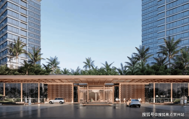 ①酒店式环岛门庭:无雨落客,仪式感归家门庭,约70米超长奢阔延展面,约7米高门阙,气度非凡仪式感满满.