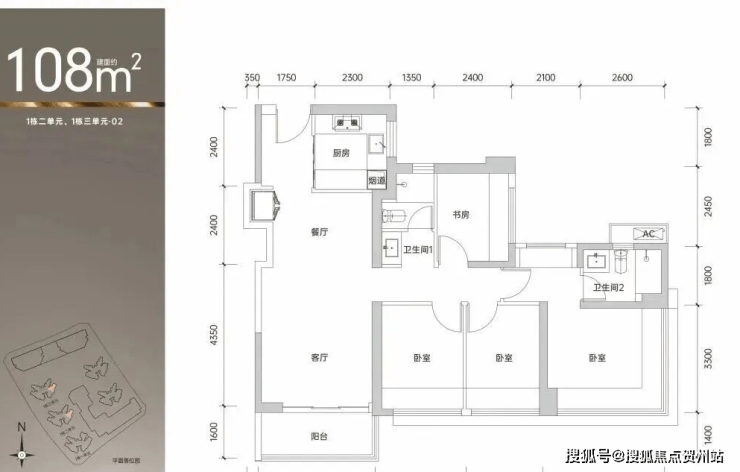 建筑面积约89㎡的3+1房2卫的01/07户型:全能型成长空间典范