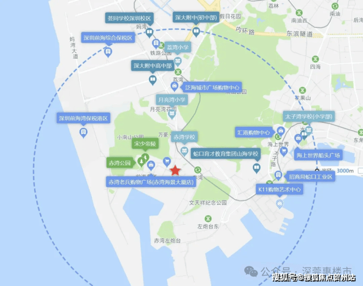 不仍有提升空间。3km 范围内的配套资源包括赤湾学校、月亮湾小学、太子湾学校、深大附中(教育),K11 购物艺术中心、海上世界船头广场、嘉盛荟商业中心、泛海城市广场(商业)等。