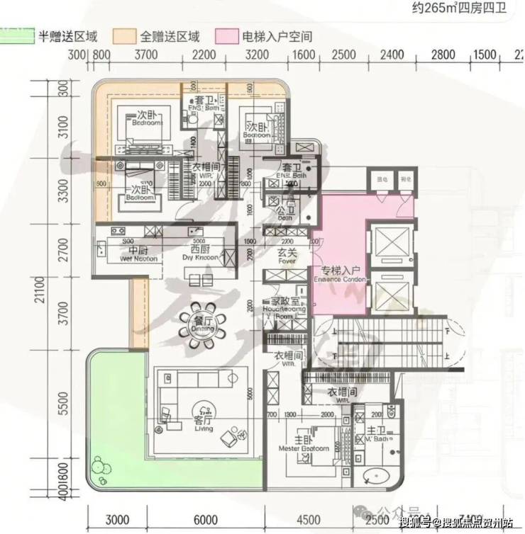 3. 253-332㎡四房四卫/五卫(2梯2户板楼,适配终极顶豪家庭)