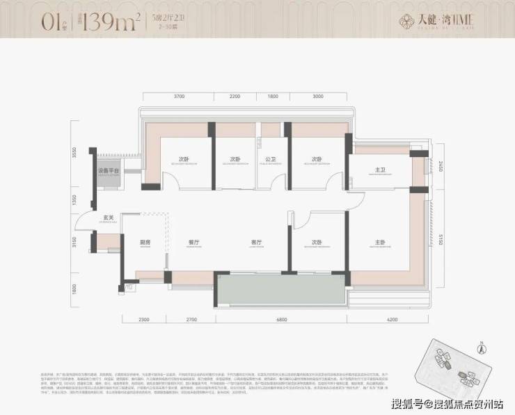 (4)139㎡五房两卫(横厅设计,总价约944-1142万,单价6.5-7.9万),横厅设计,空间感更强。【南向/西南向】