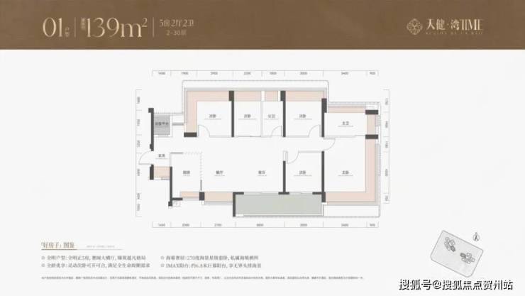 项目用地面积13657.28㎡,容积率仅2.8,建筑面积38155㎡,含住宅34555㎡,其他面积用于物业用房、托育机构和公交站,车位380个。在深圳,海景房早已不是稀缺品,真正的稀缺是“慢”。当大多数新盘把容积率做到3.5以上、楼层限高80米、户型越做越小,天健在赤湾反其道而行:两栋30层板楼、2.8容积率、113-139㎡只做四房五房,像把高速播放的南山按下了0.5倍速。这份“慢”首先体现在视觉上。