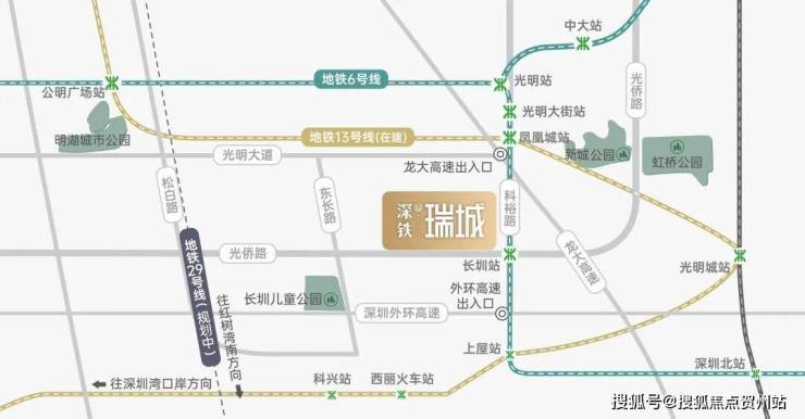 临近光明城综合交通枢纽,连接广深港高铁与赣深高铁,未来将引入13号线(在建)、地铁6号线支线二期(在建)及深莞增城际(规划)。
