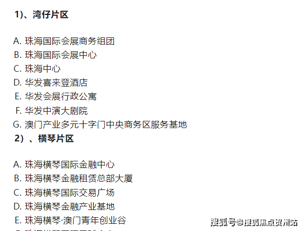 南中心——横琴金融岛:务中心,以金融产业,商务办公为主