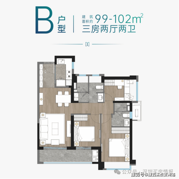 💟99㎡三房两厅二卫折后总价约378-415万
