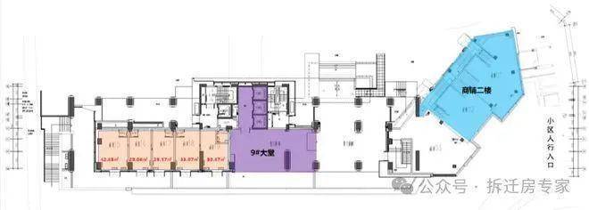 9栋-1楼为14套商铺,共计1244.87 ㎡;其中01-02-03铺为挑高铺;整体为2层铺;