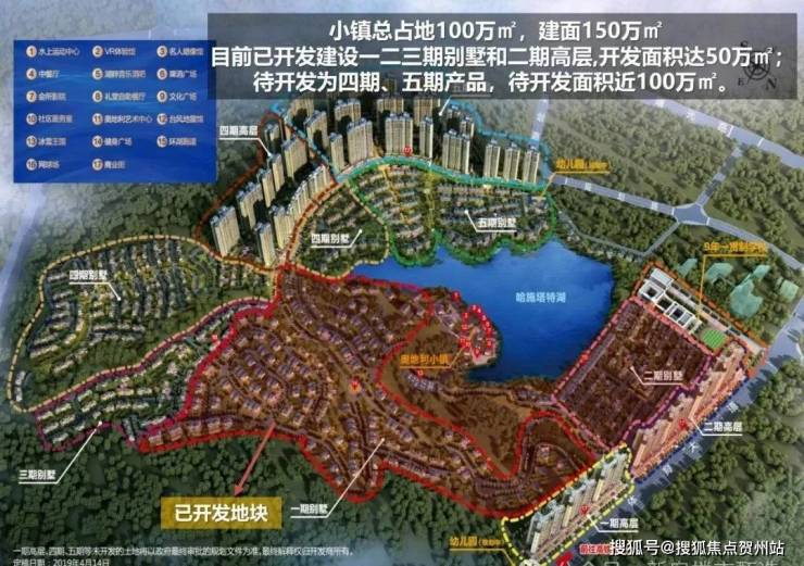 五矿哈施塔特,以哈尔施塔特小镇为蓝本,结合惠州本土风情打造的高端别墅及高层住宅产品;占地96万㎡,建面123万㎡,分5期开发,有着超低的1.35容积率以及高达41%的绿化率。