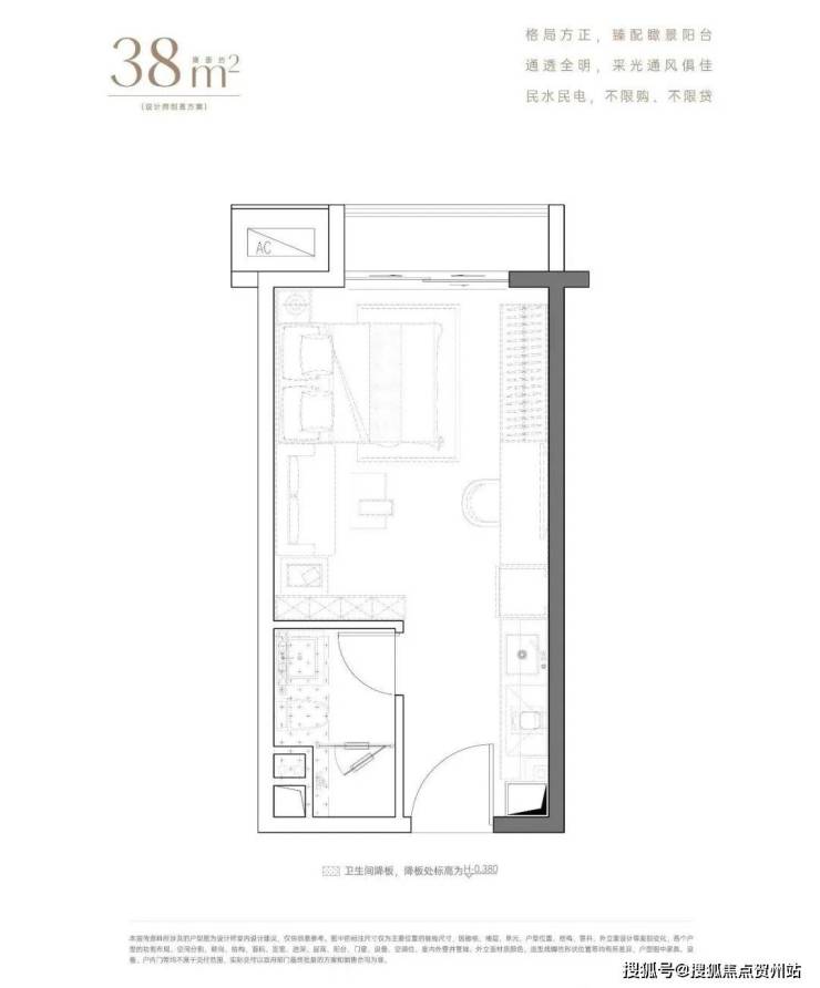 38平单房,麻雀虽小但五脏俱全,带阳台通燃气,卫浴干湿分离,可改造为小两房。