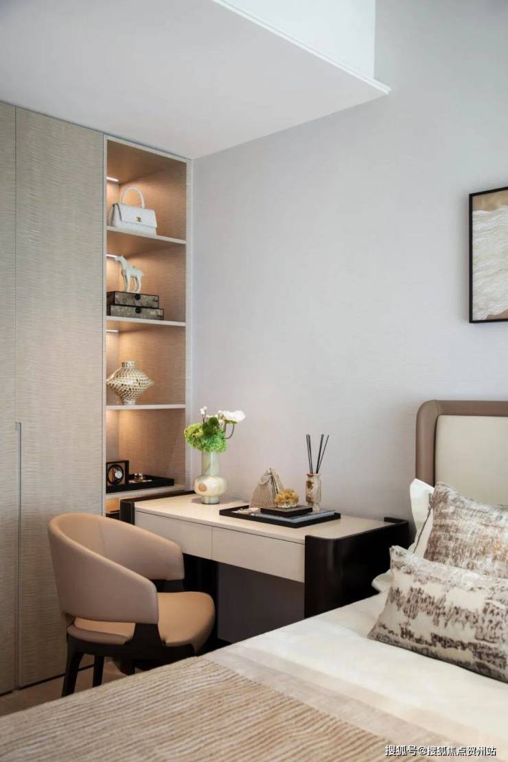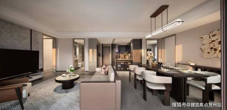 整体采用米白、浅灰等浅色调为基底,搭配深棕、墨绿等色彩点缀,辅以金属、玻璃等材质,营造出优雅大气又不失温馨的居住氛围。