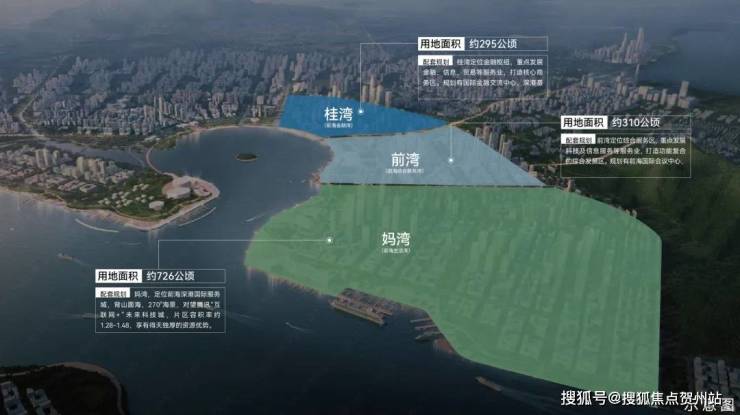 ①妈湾,三湾中体量最大的,比桂湾(295公顷)和前湾(310公顷)的总和还要多出20%,容积率仅为1.28-1.48,留白净地多;