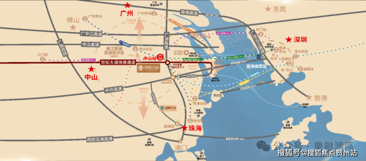 高鐵中山站旁始發大盤,站前 1 公里,深中通道、世紀大道、中山站(廣州 18 號線,深圳地鐵 33 號線)、新中山港碼頭、博愛路、中山路、廣中珠澳高鐵無縫對接,一小時生活圈;