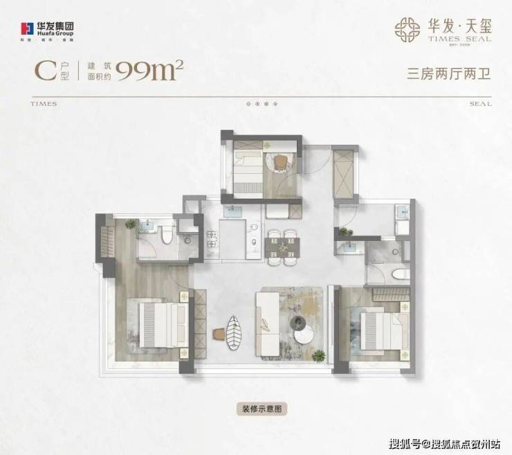 华发天玺- 启幕城芯繁华 ��主力建面约99-114㎡3-4房,超100%实得率智慧宅,