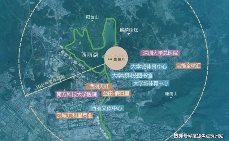 北面举步一线西丽湖,观浩淼湖水一碧如镜;南观大学城人文景观,一览无余;