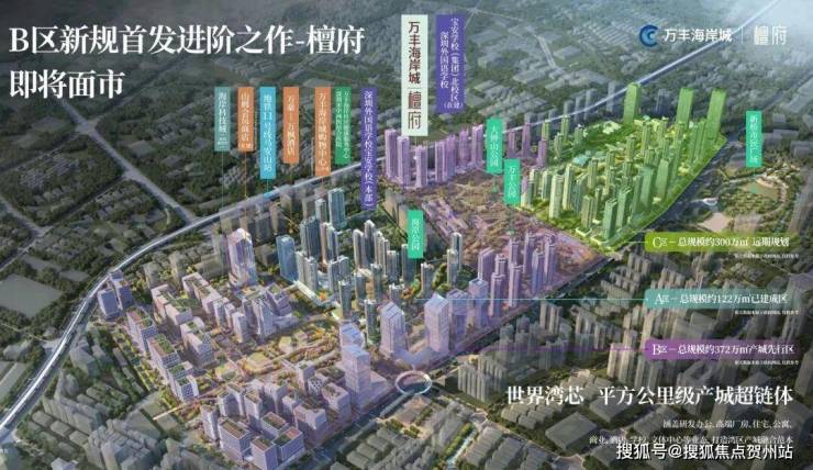 项目总占地规模超500万平方米,分为A/B/C三个大区进行整体开发,是集产业写字楼、精品住宅、教育文化、购物中心和交通枢纽于一体的超大型城市综合体项目。