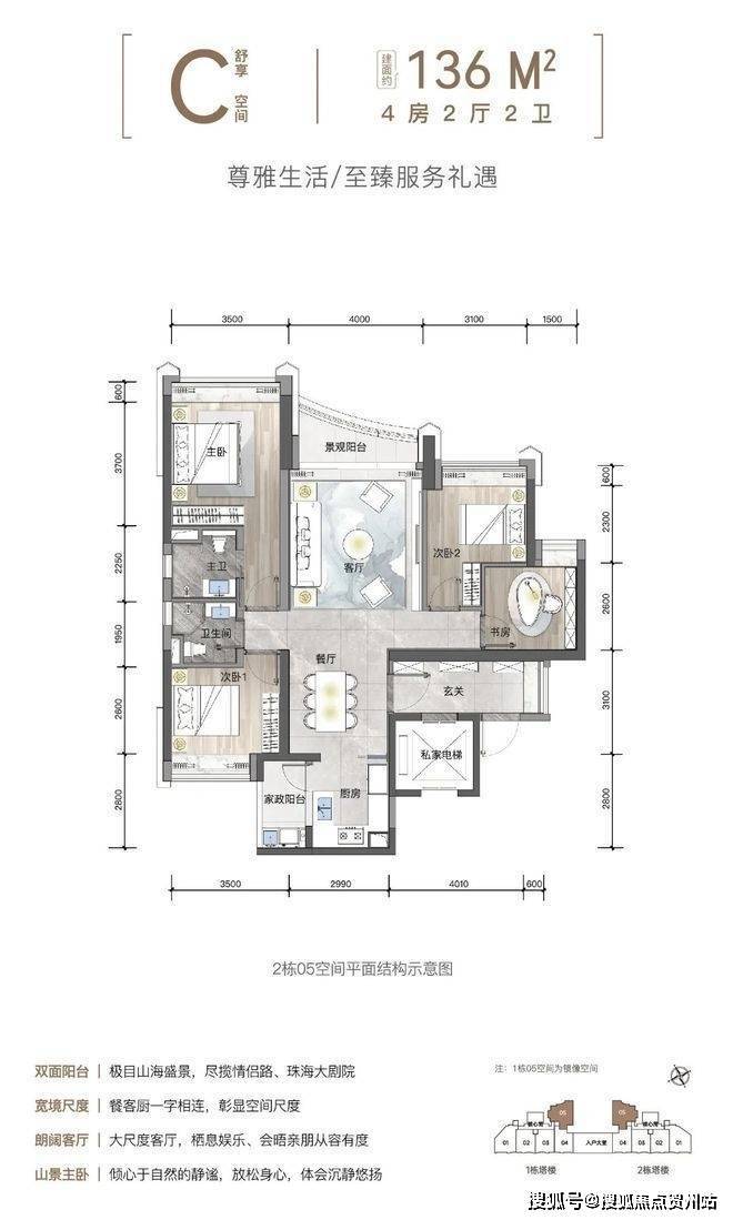 ·产 品:建筑面积约111-140㎡三至四房、270度环幕山海景观