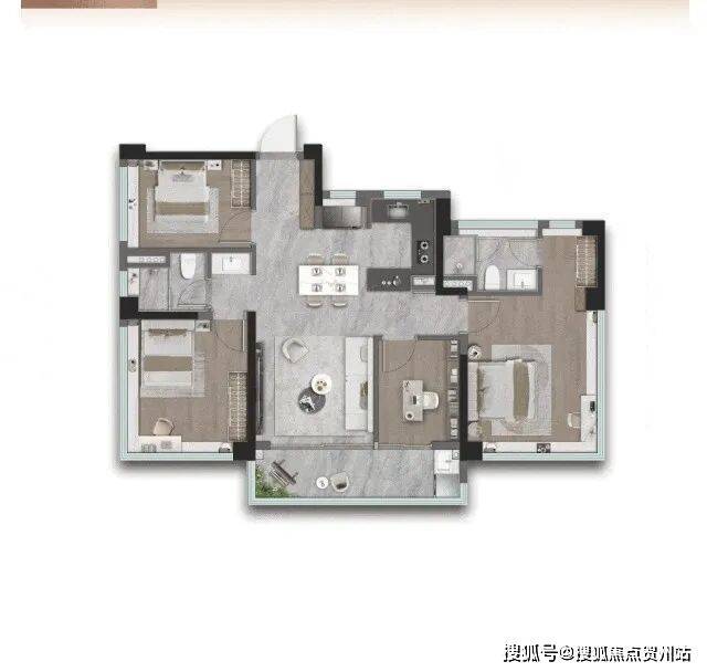 其余三间卧室可根据家庭需求灵活打造,无论是儿童房、书房还是客房,都能完美适配,见证家庭成长的每一个阶段。