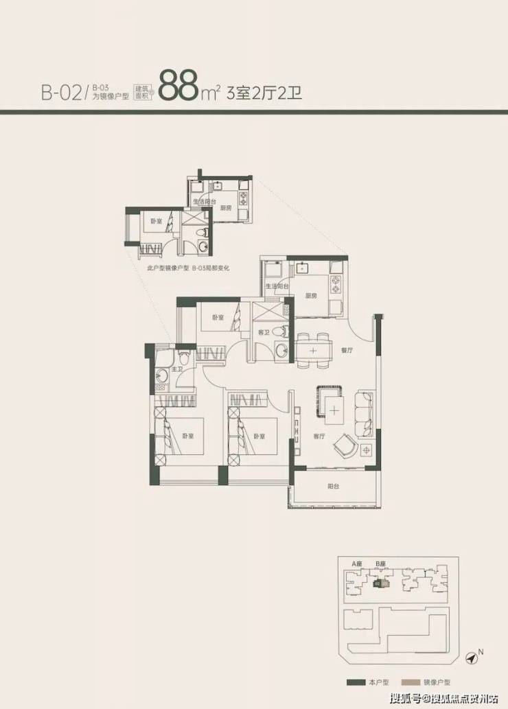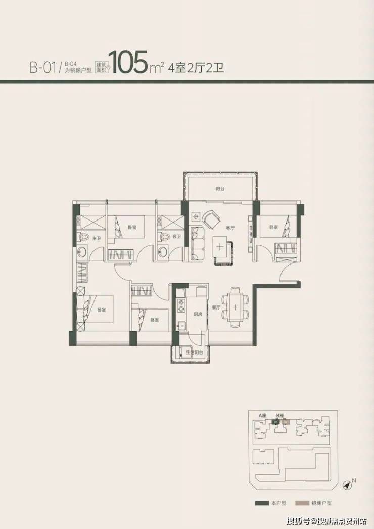 建面约88-105㎡3-4房,综合实用率达79%~89%,前海宝中难得实用好户型。