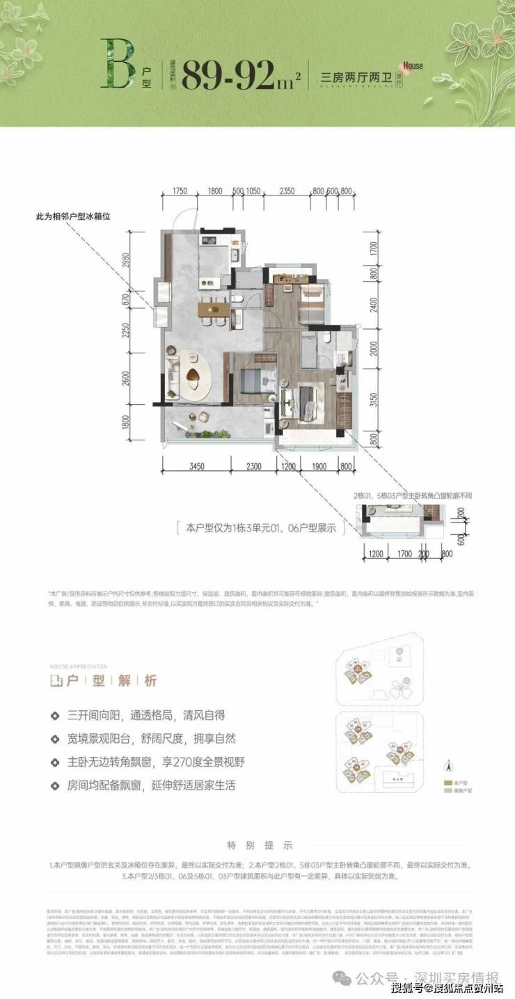 首次推首北地块1栋3单元,约80-92㎡ 3房,共195套,新规使用率高达96%-105%!