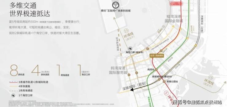 交通优势:距地铁5号线妈湾站仅550米,未来15/21/27号线及穗莞深城际在此交汇。可短时间通达南山、福田、宝安,规划2条城际轨道+1个海空口岸,快速对接大湾区生活圈。