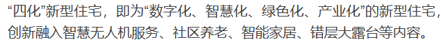 “四化”新型住宅,即为“数字化、智慧化、绿色化、产业化”的新型住宅,创新融入智慧无人机服务、社区养老、智能家居、错层大露台等内容。