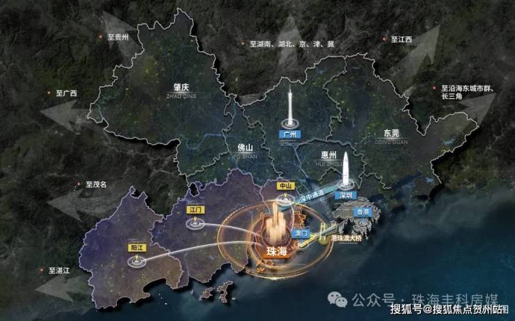 珠海为湾区内地唯一陆路相连港珠澳大桥,实现1小时直通港澳;鹤洲高铁6轨交汇,大湾区1小时自由行,6年深度开发,基础路网、基建抵近全面完工,2024第一季度GDP增速高达45.2%,稳步实现湾区西翼以珠海为核心的“一核三极 两圈四轴”,未来湾区珠海独占鳌头。