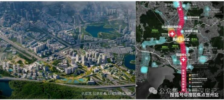 自驾方面,项目距离梅观路仅约200米,可快速南下福田金融中心,十来分钟可达。梅观路已完成市政化改造,采用双向14车道标准(主路8车道+辅路6车道),设计时速达80公里/小时,通行能力提升100%。此外,项目距离深广中轴城际民乐站仅数百米,远期规划将实现与穗莞深城际、深大城际等线路的换乘,构建广深一小时交通圈。