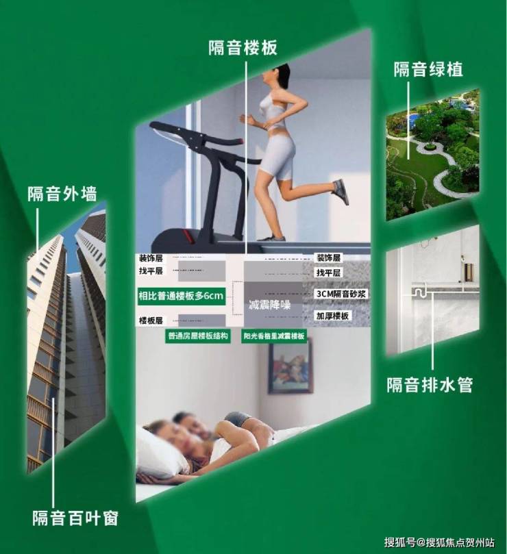 创新五维隔音体系,隔音楼板、隔音外墙、隔音百叶窗、隔音绿植、隔音排水管