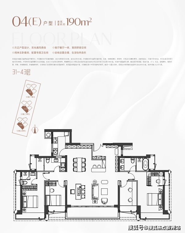 由53栋三个单元组成,3梯5户的配置,户型在89-190㎡之间,主打三到四房,共516套,小户型适合刚需家庭。