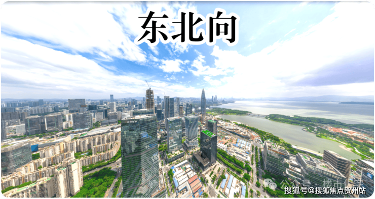 东边看人才公园和深圳湾方向,海景、公园、地标景观最好,前方目前建筑稀疏,且高度都在百米内。100米以内的楼层也能看人才公园、深圳湾海景,就是部分角度会有遮挡。100米以上基本就是无遮挡景观了,越高的楼层观感越好。