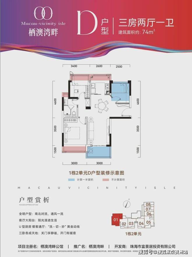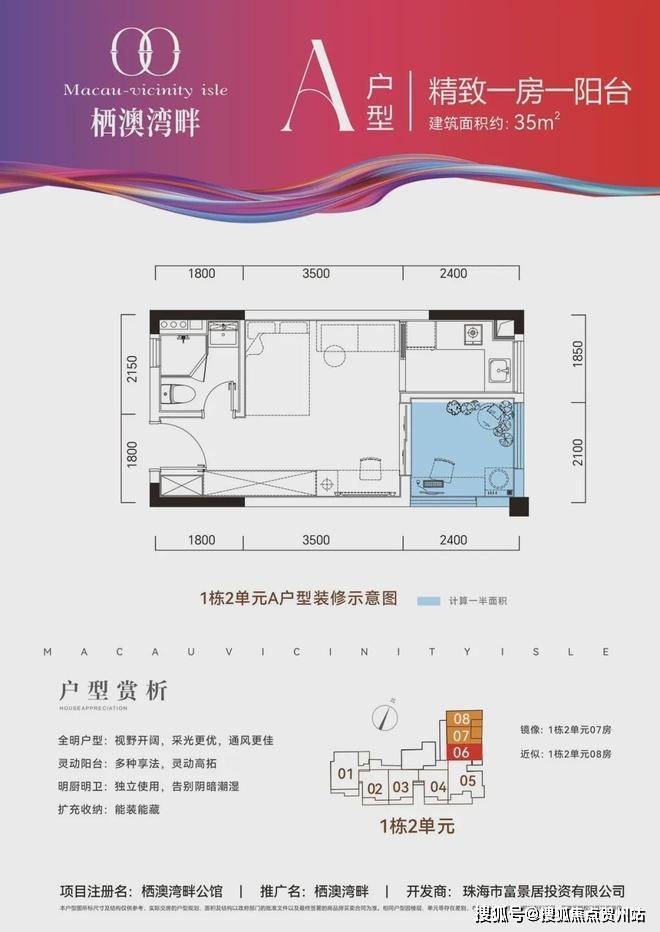 栖澳湾畔作为纯住宅产权项目,栖澳湾畔规避了商住公寓的居住短板,为业主提供更稳定的居住体验与资产保障。主力户型覆盖35㎡精致一房至74㎡阔绰三房,所有户型均采用铂金精装交付,省去后期装修烦恼,同时搭配大面积玻璃窗与阳台设计,推窗即可尽览澳门旅游塔、西湾大桥的双城景观,让居家时光与璀璨景致相伴。