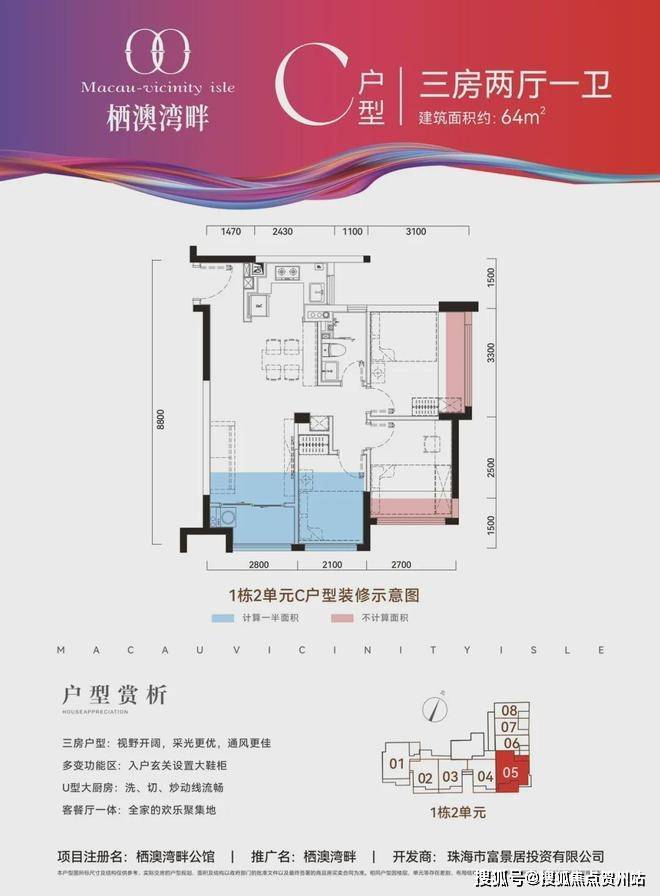项目临近轻轨珠海站,50多分钟直达广州南,在建的广州地铁18号线拱北站亦在附近,跨境通勤、湾区出行都十分便捷;周边有拱北口岸免税店、来魅力口岸城等商圈,夏湾小学、珠海市第二人民医院等生活配套齐全,完全能满足澳门家庭的日常需求。