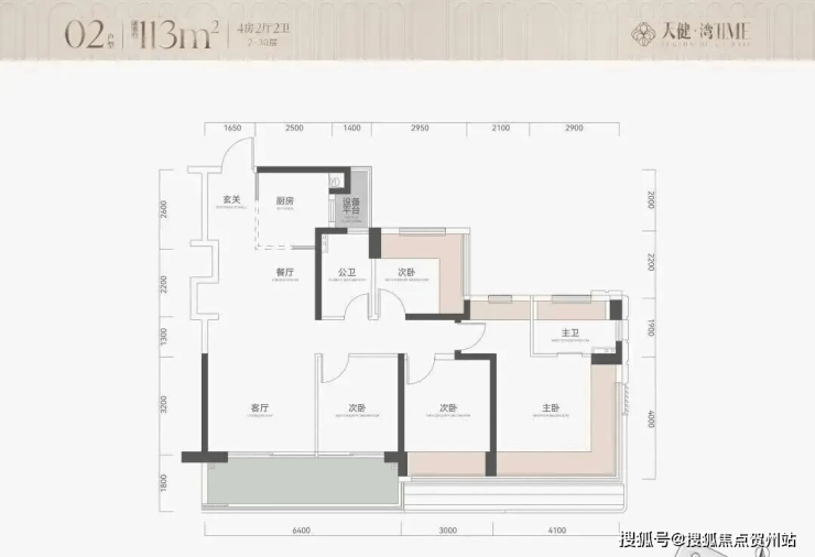 113㎡4房2卫,竖厅户型,朝南看海,6.4米宽大阳台;