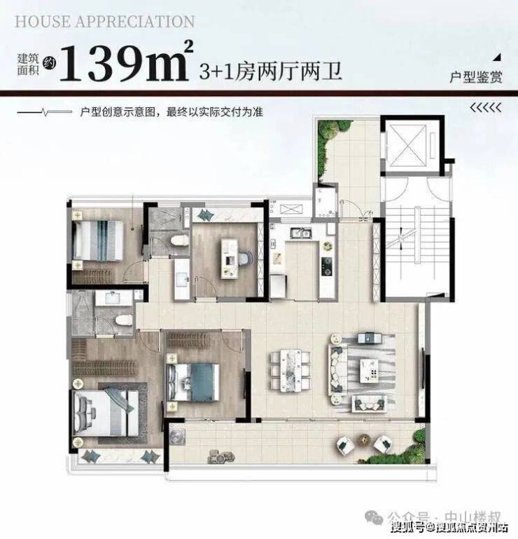 • 户型:119/139/172㎡四房,第四代住宅空中花园户型