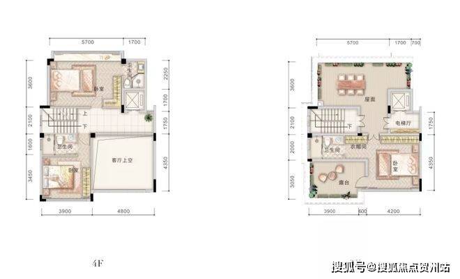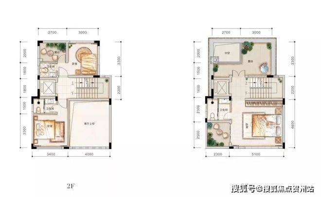 (1)上叠户型含独立院落、中空挑高客厅及南北双阳台,电梯直达。