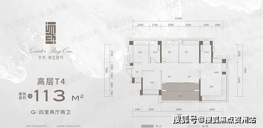 113㎡四房两厅两卫:四户风车布局,南北通透,折后单价约 3.4-4.5 万 /㎡,总价约 384-508 万
